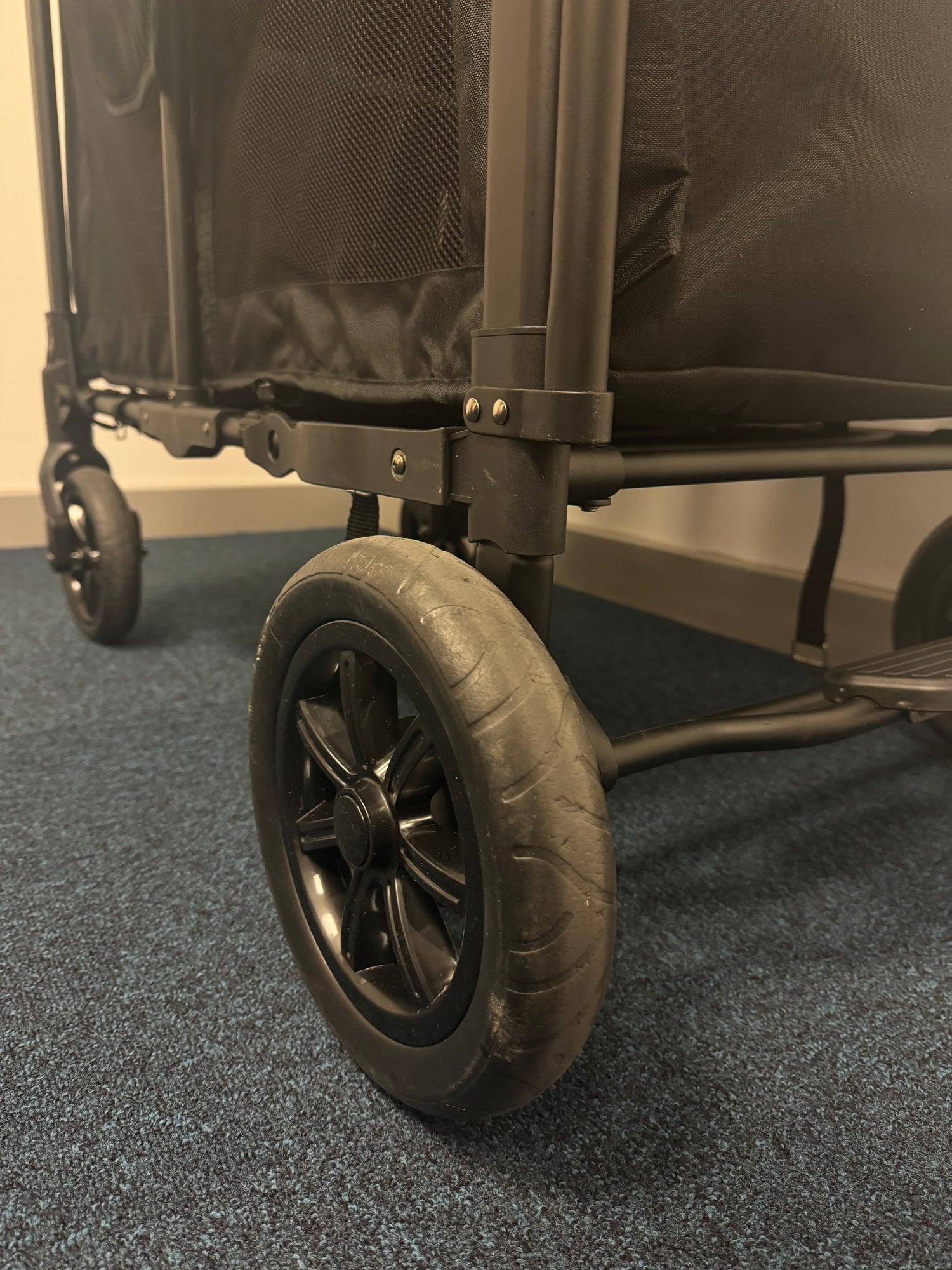Wheels: Clean stroller wagon wheels regularly with water and remove any dirt. Be sure to wipe off any remaining water with a dry cloth.